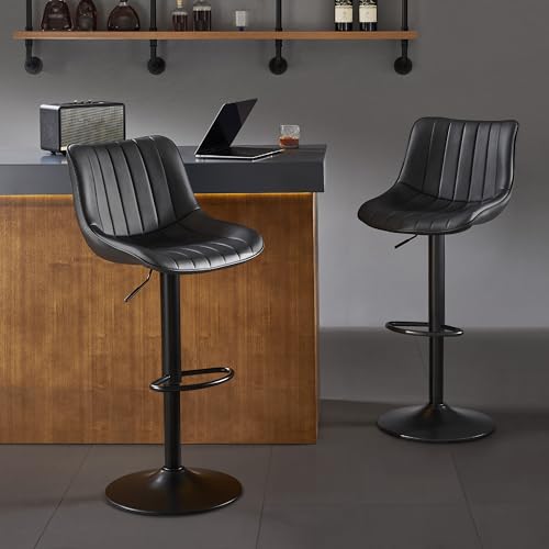 Garvee Bar Stools Set of 4, Adjustable Swivel Counter Stools with Backless Faux Leather Seat for Kitchen Island, Home Bar, Dining Room, Black