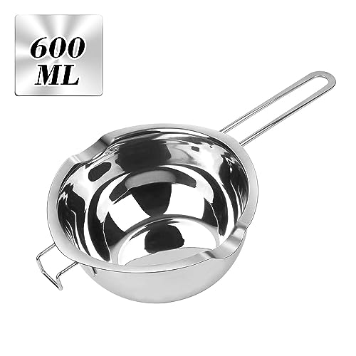 Stainless Steel Melting Pot, 600ML/0.6QT Chocolate Melting Pot, Double Spout Stainless Steel Pot, for Melting Chocolate, Candy, Butter, Cheese, Wax, 28 cm (11 Inch) Diameter