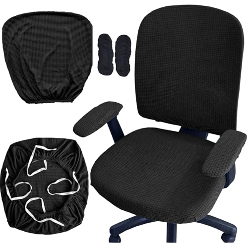 Chair Cover for Office Chair, Fleece Split Swivel Design with Full 360 Protection, Elastic Strap Bottom for Secure Fit, Compatible with Most Computer(Dark Grey)