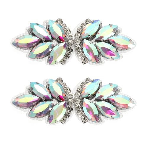 letsinstyle 4.3 Inch Round Rhinestone Flower Applique, Glitter Floral Crystal Patch with Metal Chain, Sparkly Patches for Evening Dresses Bridal Gowns Dance Costumes Embellishments