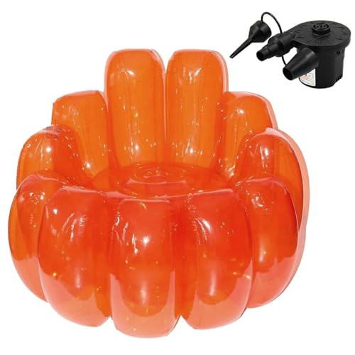 TC LAMROBAM Inflatable Chair Blow Up Sofa with Electric Pump, Transparent PVC Couch Single Seat for Adults, Indoor Outdoor Furniture Air Sofa for Bedroom Camping Pool 300LB (Orange)
