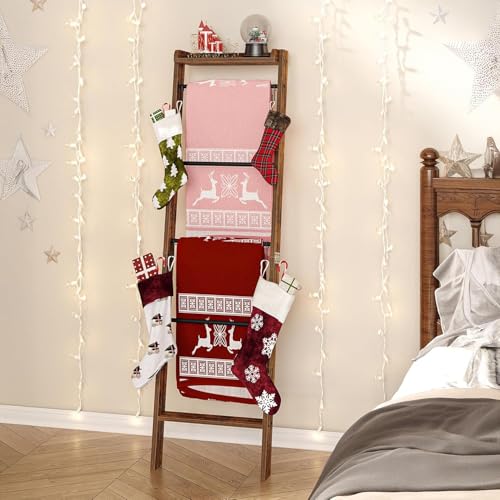Ansionsol 6.3ft Blanket Ladder with Storage Basket, 5 Tier Decorative Ladder Shelf Stand for Living Room & Bedroom, Wall-Leaning Blanket Holder Quilt Rack for Home Décor, Rustic Brown & Black