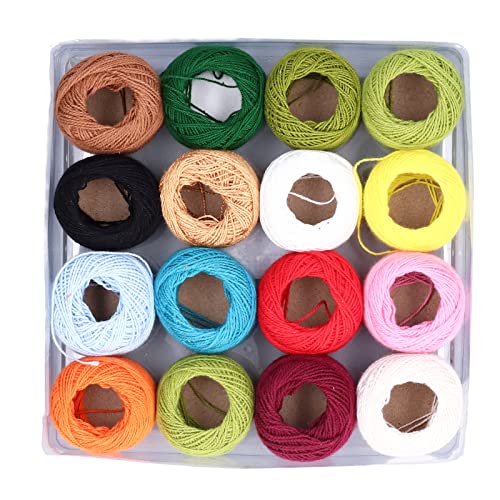 SENECESLI Premium 16Pcs Crochet Cotton Thread Colorful High Luster Yarn for Embroidery and Crafts