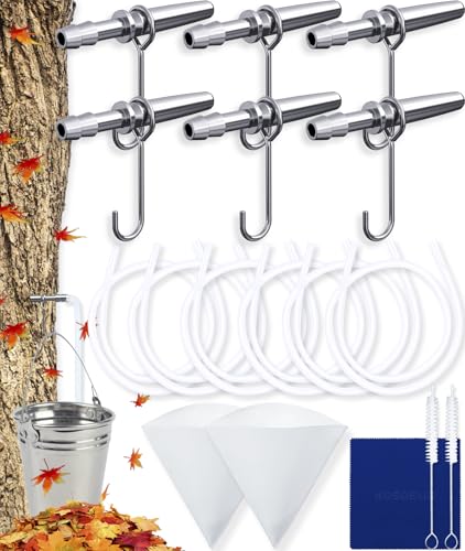 Maple Syrup Tapping Kit, Stainless Steel Maple Tree Taps Spiles with Spiles Brushes Hooks, Reusable MapleSyrup Filter Tree Taps Supplies for MapleSyrup Making Equipment Family Farm Garden