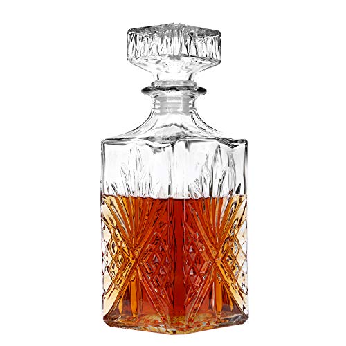 LUSKEYCOR Whiskey Decanter Set, 32 oz Crystal Cut Glass Decanter with 4x 11.5 oz Glasses, Lead-Free Crystal, Elegant Gift for Men, Dad, Birthday, Father's Day