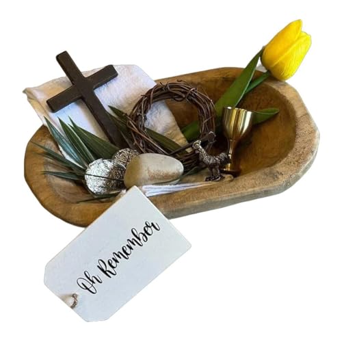 Oh Remember Kit- Symbols of The Easter Resurrection, Easter Tray Decor with Wooden Prayer Bowl and Crown of Thorns Accent, Faith Based Display, Religious Keepsake Collection (Without Display Bowl)