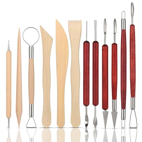 CORHAD Pottery Trimming Tool - Stainless Steel Carving Knife - Double-Sided Head Wooden Handle for Ceramic Clay Artists DIY Sculpting