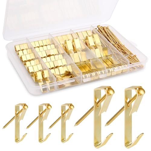 184 Pieces Picture Hanging Kit, 20lb, 30lb, and 50lb Picture Hangers, Metal Picture Hanging Hooks with Nails, on Drywall, Wooden Wall(Gold)