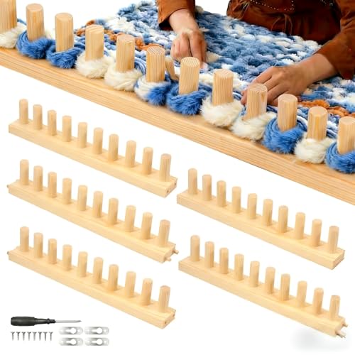 Knitting Loom, Hand Knitting Yarn Chunky Blanket Kit, Multi-Craft Weaving Loom, Wooden Frame for DIY Throw Blankets Adjustable Size for Chunky Blankets Portable Sturdy
