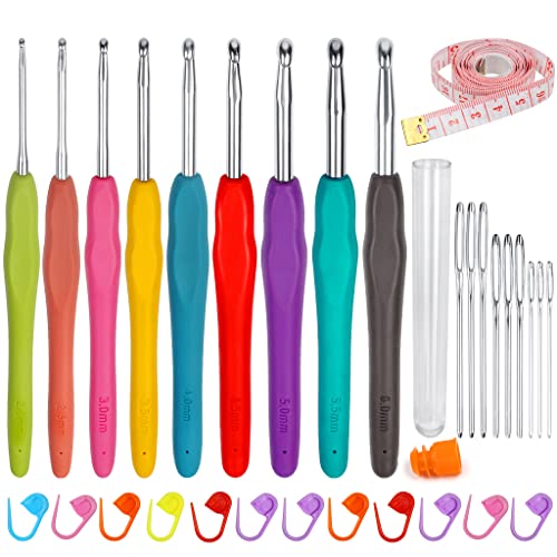 GETAJGHSD 8 Pieces Aluminum Yarn Crochet Hooks with Soft Tpr Handles, Curved Knitting Needles Set for DIY