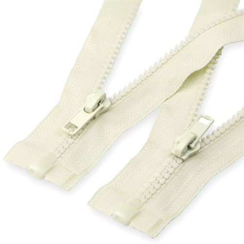 Nylon Zippers for Sewing, Zips 5 Pcs 70/80/90/100/120/150cm Double Open-End Auto Lock Two-Way Open Zip for Jacket DIY Sew 5#(Off white,80CM)