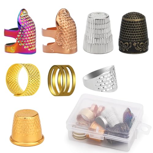 BEBEMOKO 10pcs Metal Sewing Thimbles Iron Finger Protectors Fingertip Guards for Hand Sewing DIY Crafts Safe