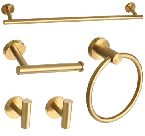 5-Pieces Matte Black Bathroom Accessories Set, 24 inch Stainless Steel Bath Towel Bar, SUS 304 Bath Hardware Set, Towel Rack for Wall Mounted, Toilet Paper Holder with Shelf