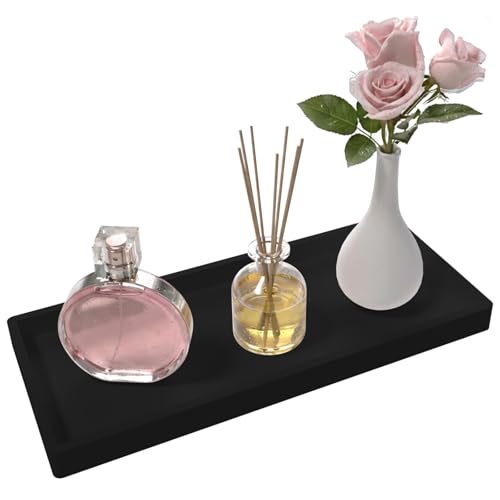 Black Bathroom Tray Countertop, 14x5.7x1.4 inch Soap Dispenser Tray with Handle Non-Slip Decorative Vanity Trays for Bathroom, Dresser.