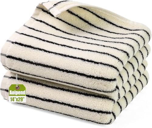 Aoipend Fluffy Caramel-Striped Pure Cotton Hand Towel,100% Combed Cotton,Luxury Towel,Super Absorbent(Pack of 1) (29.53" L 脳 13.39" W)