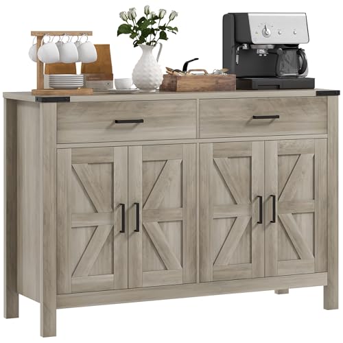 48" Solid Wood Sideboard Console Table with 2 Drawers & 2 Cabinets, Retro Farmhouse Buffet Server for Dining Room, Storage Cabinet for Kitchen, Living Room & Hallway, Easy Assembly