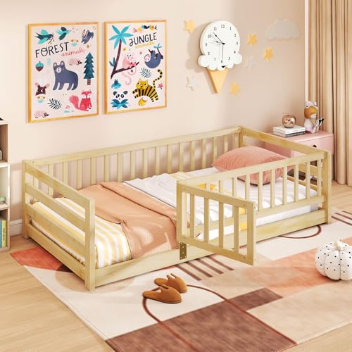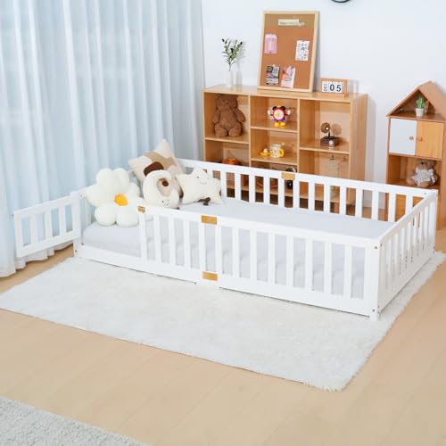 DoCred Toddler Bed - Toddler Floor Bed, Kid Bed Frame with Removable Guard Rails, Kids Bed for Ages 2-7 Years,Standard Crib Size(Mattress Not Included)
