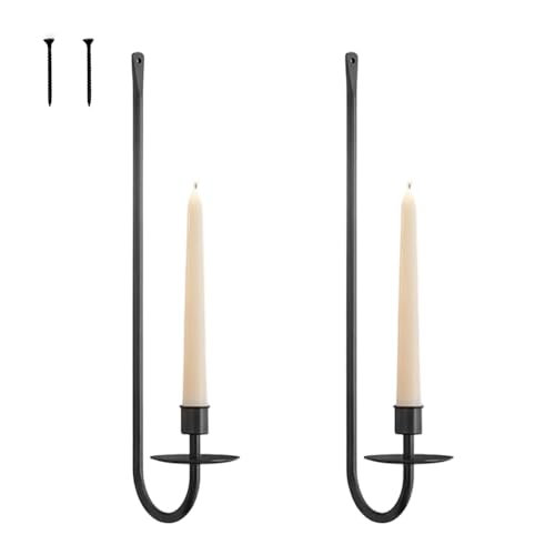 MrMrKura Wall Candle Sconces Set of 2, Metal Wall-Mounted Candle Holder for Taper Candles, Modern Wall Decoration for Farmhouse Fireplace Living Room (Black)