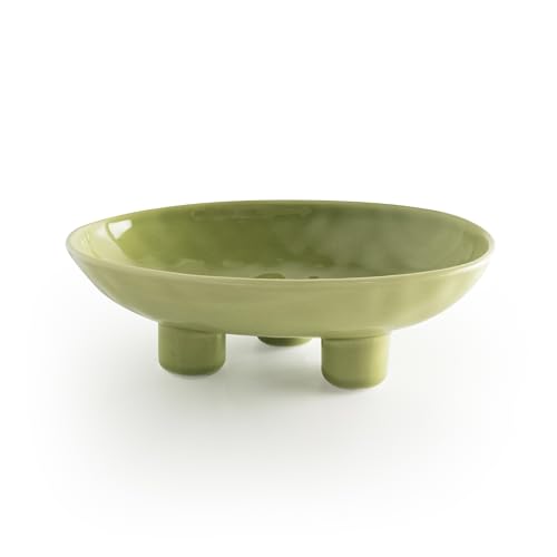 Three-Legs Ceramic Fruit Bowl, 6.5inch Ceramic Bowl for Kitchen Counter, Table D茅cor Oval Large Bowls for Breads, Salad, Fruit Ceramic Serving Bowl, Large Candy Bowl, Bright Cyan