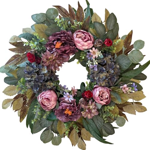 Bibelot 24 Inch Spring Wreath for Front Door, Artificial Spring Summer Floral Wreath with Hydrangea Daisy Berry Leaves for Door Wall Wedding Party Holiday Home Decor