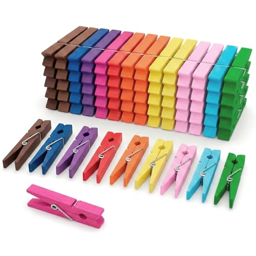 Roleader 100pcs Colorful Mini Wooden Clothespins Heart and Star Shapes, Small Photo Clips for Wall Hanging