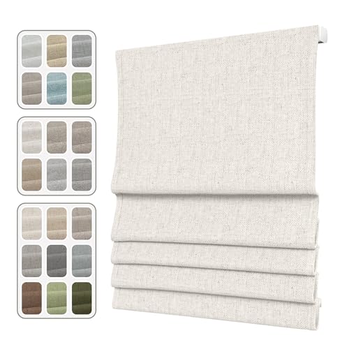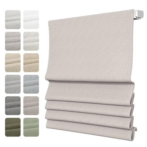 TWOPAGES Relaxed Roman Shade, Soft Fold Linen Blackout Cordless Window Shade for Indoor Windows Kitchen Living Room Bedroom