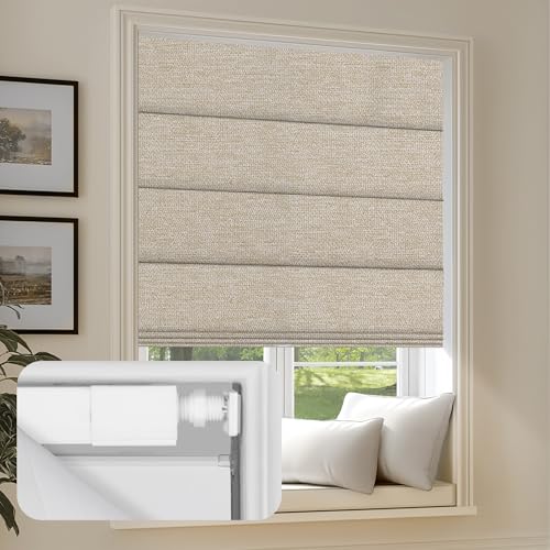 SLKWDOBD No Drill Cordless Roman Shade, Light Filtering or Blackout No Tool Roman Blind for Window, Thermal Insulated, UV Protection, Privacy, Custom Size for Home, Office, No Drill Basic Type
