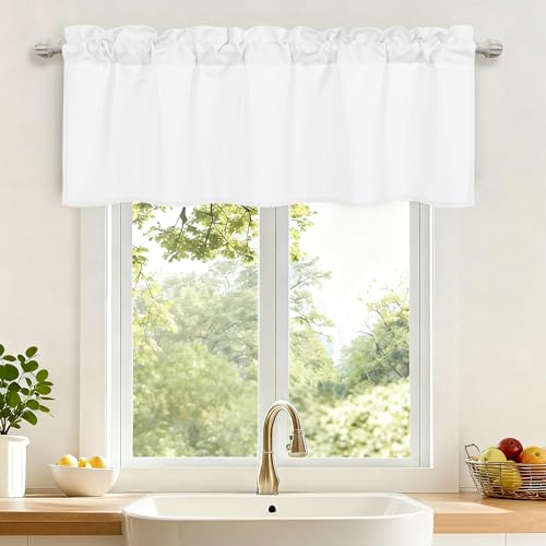 XZXFSYJH Curtain Valances for Windows 1 Panel White Flower Spring Rod Pocket Small Short Valances Light Filtering Window Treatments Window Curtains for Kitchen Bathroom Living Room Decor 54" X 18"