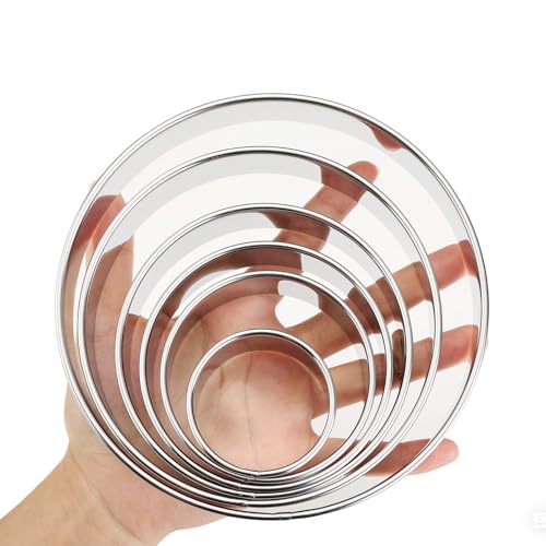 6 PCS Different Sizes Cookie Cutters Set Stainless Steel Biscuit Cutters Baking Round Cookie Cutter for Baking Pastry Donuts Fondant Sandwich Cake Pastry Molds (Round 6-Piece)