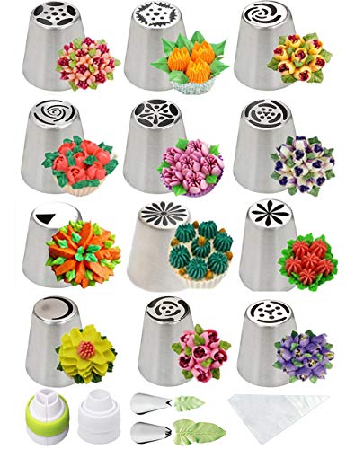 Baipesiy 8 Pack Extra Large Russian Piping Tips Set Stainless Steel Icing Nozzles for Buttercream Flowers Includes 6Tips, 2 Leaf Tips for DIY Cookies Desserts Cake Decoration Baking Tools (8 Pack)