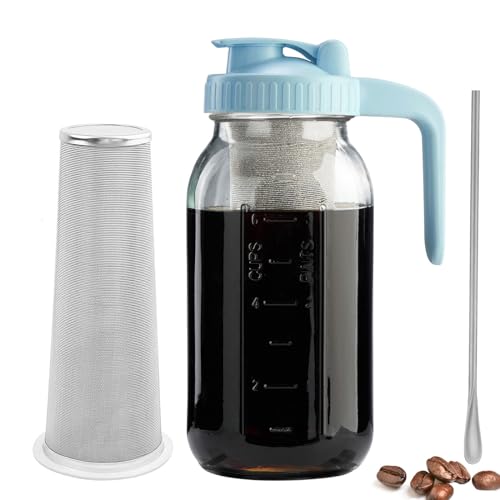 2 Pack Cold Brew Coffee Maker, 64 oz Glass Mason Jar Pitcher with Stainless Steel Filter, Cold Brew Pitcher Glass Pither with Pour Spout Lid for Iced Coffee, Tea and Milk