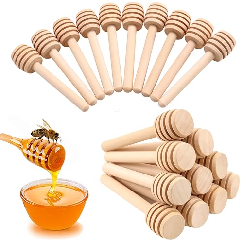JINGIHE 24Pcs Wooden Honey Dipper, Honey Dipper Stick, Mini Honey Dipper, Honey Drizzle Comb Wand, Honey Server Stir Sticks, Honeycomb Stick (15cm 6in)