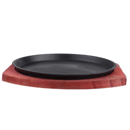 Cabilock Cast Iron Steak Sizzling Plate with Wooden Base Thickened Nonstick Fajita Pan for Induction and Gas