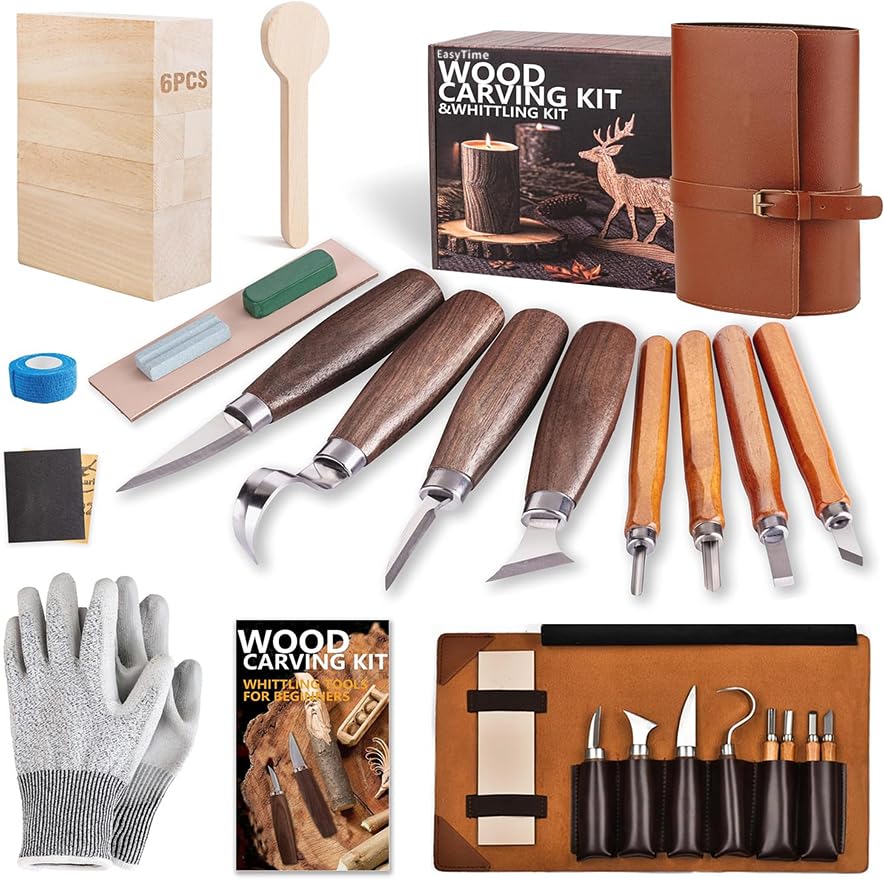 Wood Carving Kit Whittling Kit Wood Carving Tools Set for DIY Crafts with Detail,Roughing,Sloyd,Hook Knife,Whittling Knives for Wood DIY Beginners