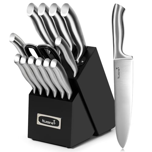 KnifeSaga Knives Set for Kitchen, 14PCS Premium Stainless Steel Knife Set with Block & Sharpener, Ultra Sharp Knife Set with Ergonomic Handle for Chef