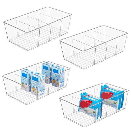 Wenscis 2 Pack Large Snack Organizer for Countertop, 13.7"脳9.3"脳6" Clear Plastic Snack Storage Bin for Kitchen Pantry, 6 Compartment Snack Bar with Dividers for Cabinet, Chip Packet Holder for Office