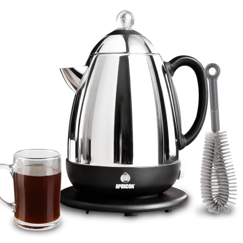 APOXCON Electric Coffee Percolator Stainless Steel Coffee Maker with Clear Brew Progress Knob & Cleaning Brush Auto Keep Warm Cordless Serving elegant design Coffee pot with On/OFF Switch (10 Cup)