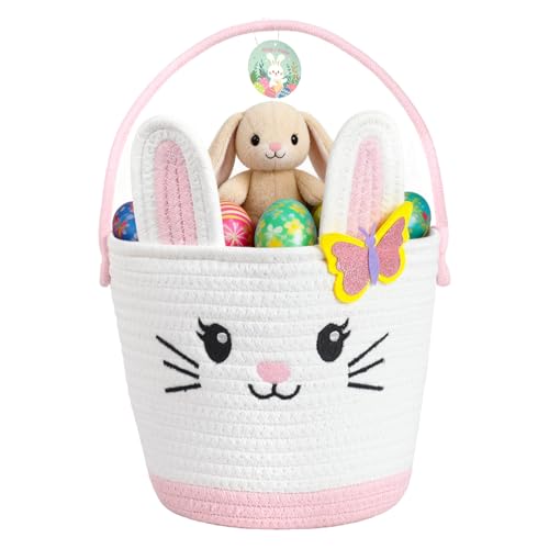 Personalized Easter Basket with Embroidered Name, Custom Bunny Plush Bag for Girls, Bucket for Egg Hunt, Personalized Easter Gifts Tote Bag for Girls Boys, Basket Decor Birthday Christmas Gifts