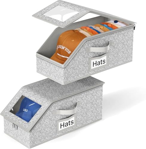Bothyi Cap Organizer Hat Storage Box Storage Case Easy Access Stackable Zippered Closet Shelf Hat Holder, Gray
