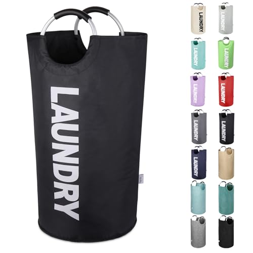 Collapsible Laundry Basket, Mesh Pop-Up Hamper for Dirty Clothes, Foldable Storage Bin for Bathroom, Dorm, Travel, Black