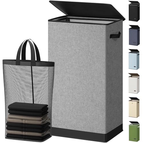 2Pack Clothes Hampers for Laundry, Foldable Laundry Basket with Breathable Mesh and Reinforced Handles, Collapsible Laundry Baskets for College Dorm, Bathroom, Laundry Room, Dirty Clothes Basket
