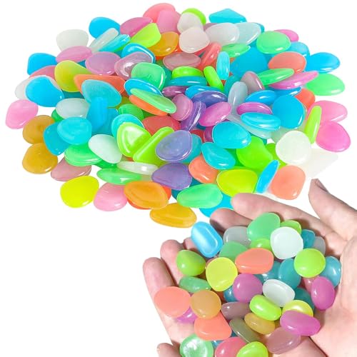 200 Pcs Glowing Rocks, Colorful Glow Pebbles for Garden, Yard, Walkway, Aquarium & Landscape Lighting, DIY Crafts