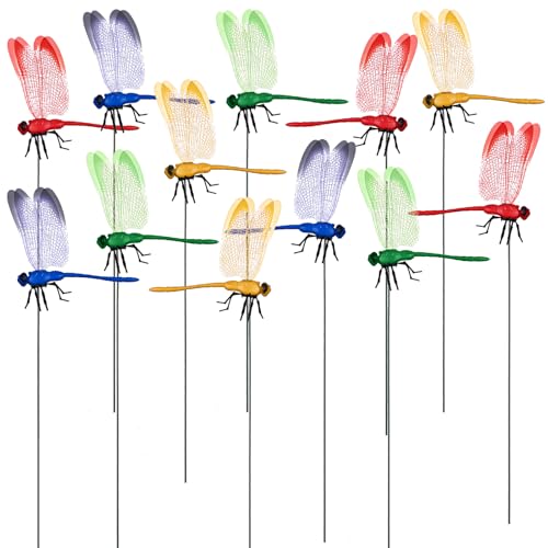 3Pcs Dragonfly Garden Decor, Solar & Battery Powered Rotating Dragonfly Clip Bug Repellent for Outdoor Yard, Patio, and Garden Decoration