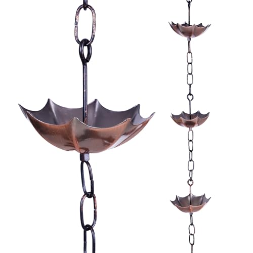 Rain Chains, Copper Heavy Duty Decorative Downspout, 12 Cups Water Chains for Gutters Gazebo Roof Canopy