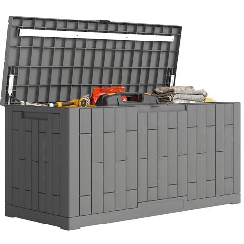 DRATO 320 Gallon Deck Boxes Outdoor Waterproof, Resin Large Lockable Storage Box with Lid, Outdoor Storage Bench Patio Cushions Furniture, Garden Tools, Pool Accessories(Black, 320 Gallon)