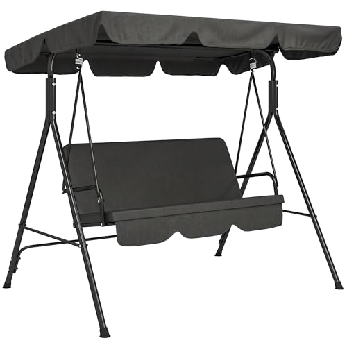 3-Seat Outdoor Patio Swing with Adjustable Canopy Knob, Heavy-Duty Steel Spring Hooks & Triangular Frame, Porch Glider with Non-Slip Feet for Backyard, Deck, Garden 鈥 Black