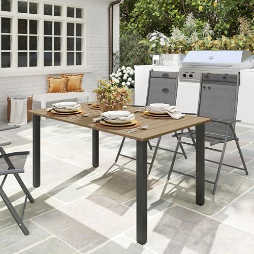 Outsunny Outdoor Dining Table for 4-6, 59" Rectangular Outdoor Patio Table with Metal Legs, Wood-Effect Top for Garden, Backyard, Balcony, Grey
