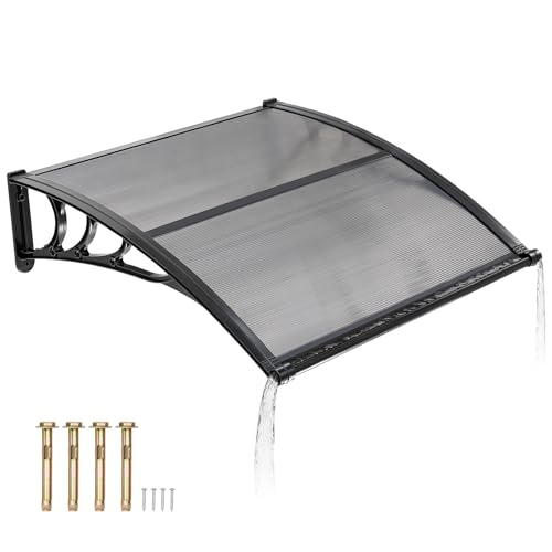 Door Awning Window Canopy, 33 x 27 Inch Polycarbonate Cover with Aluminum Alloy Bracket, UPF 50+ UV Protection Sun Shade and Rain Shelter for Front Door, Patio, Porch, Transparent (Aluminum)