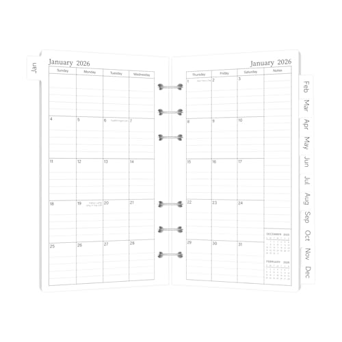 Homoyoyo 1 Set A5 Calendar Inserts - Jan 2026 to Dec 2026 Monthly Planner Refills with Index Tabs - Hole Punched A5 Paper 8.3"x6.3" - Agenda Organizer Page Colored