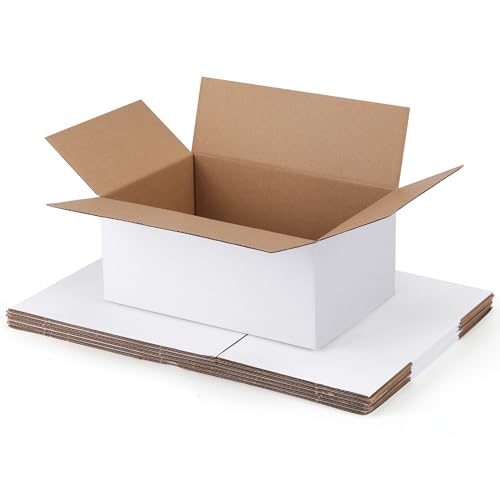 SEWACC 8pcs White Corrugated Cardboard Boxes 10x10x20cm for Shipping, Moving, Small Business Packaging